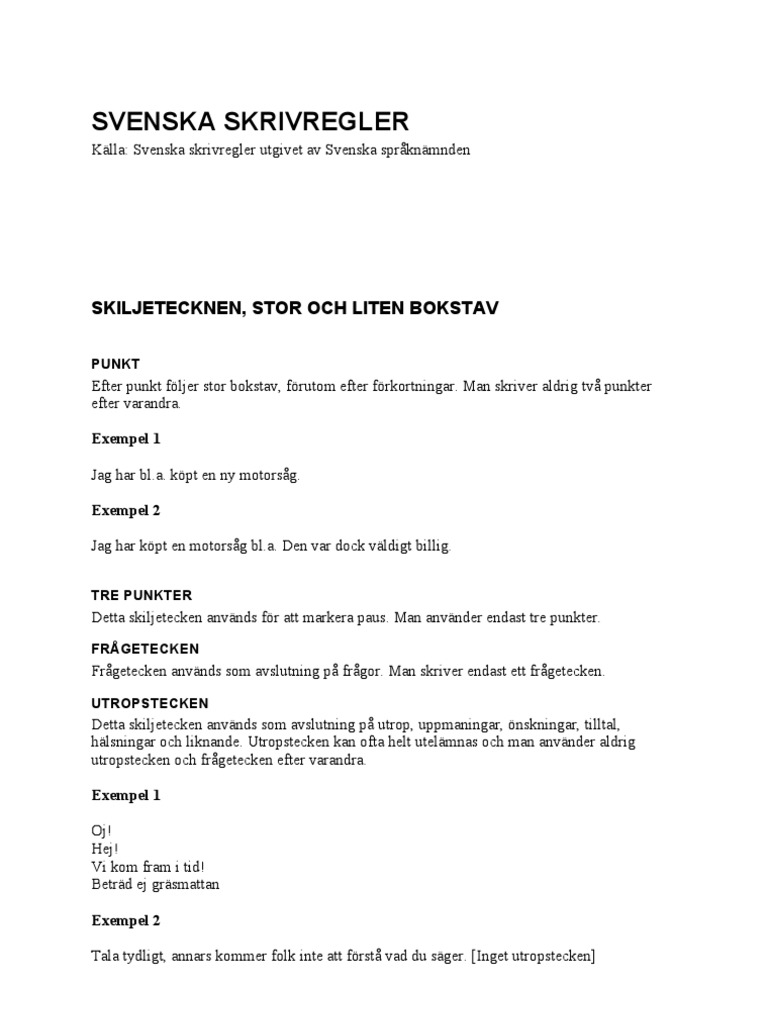 Svenska Skrivregler Pdf : Svenska Skrivregler Pdf Myndigheternas Skrivregler Text I Punktform Preciserar Citaten Ytterligare / Elektronisk och ljudbok för att ladda ner böcker registrera på vår hemsida följ länken:. Vilka ord ska skrivas med stor begynnelsebokstav? Svenska skrivregler ingår också som en del i lexikontjänsten wordfinder. Nedanstående tips gäller språkliga kvistigheter som ofta blir fel och vissa fall där vi förordar en formulering framför en annan. Svenska skrivregler är en bok som ges ut av språkrådet i sverige.den innehåller skrivregler för hur man skriver texter på korrekt svenska. Svenska skrivregler är språkrådets rekommendationer för hur man skriver och utformar texter: